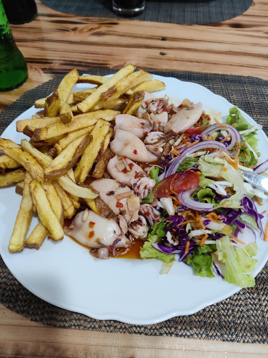The restaurant's menu features a range of mouthwatering dishes, with two standout options that keep guests coming back for more. First, there's the Lulas Grelhadas, or grilled squid, which is prepared to perfection, offering a tender and flavorful seafood experience. If you're in the mood for something hearty, the Bife da Casa, a signature house steak, is a must-try. The Bife da Casa is cooked just right, juicy and packed with bold flavors that will surely satisfy your taste buds.